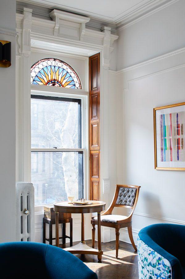 △ 半弧形的玻璃花窗在白色基调下显得格外耀眼,阳光透着缝隙折射而来,星星点点中自带一股难以言喻的浪漫。