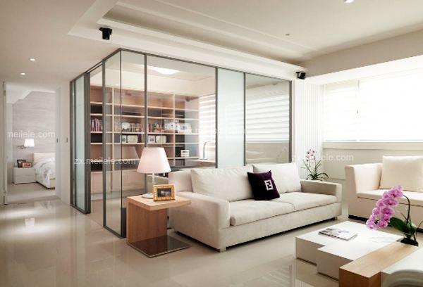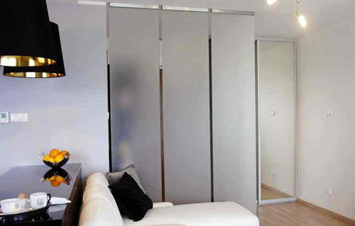 第二种是磨砂玻璃,磨砂玻璃又被称为毛玻璃。且经过研磨喷砂等加工方法,使平板玻璃的表面形成均匀的粗糙纹理,这种玻璃有透光性,而不具备透视性,常常被用于隔断中在面积不大的空间中,将其做成隔断的形式,并与电视墙结合,可形成虚与实的对比,丰富,同时还能避免客人入户,给室内的人以心理上的安全感。